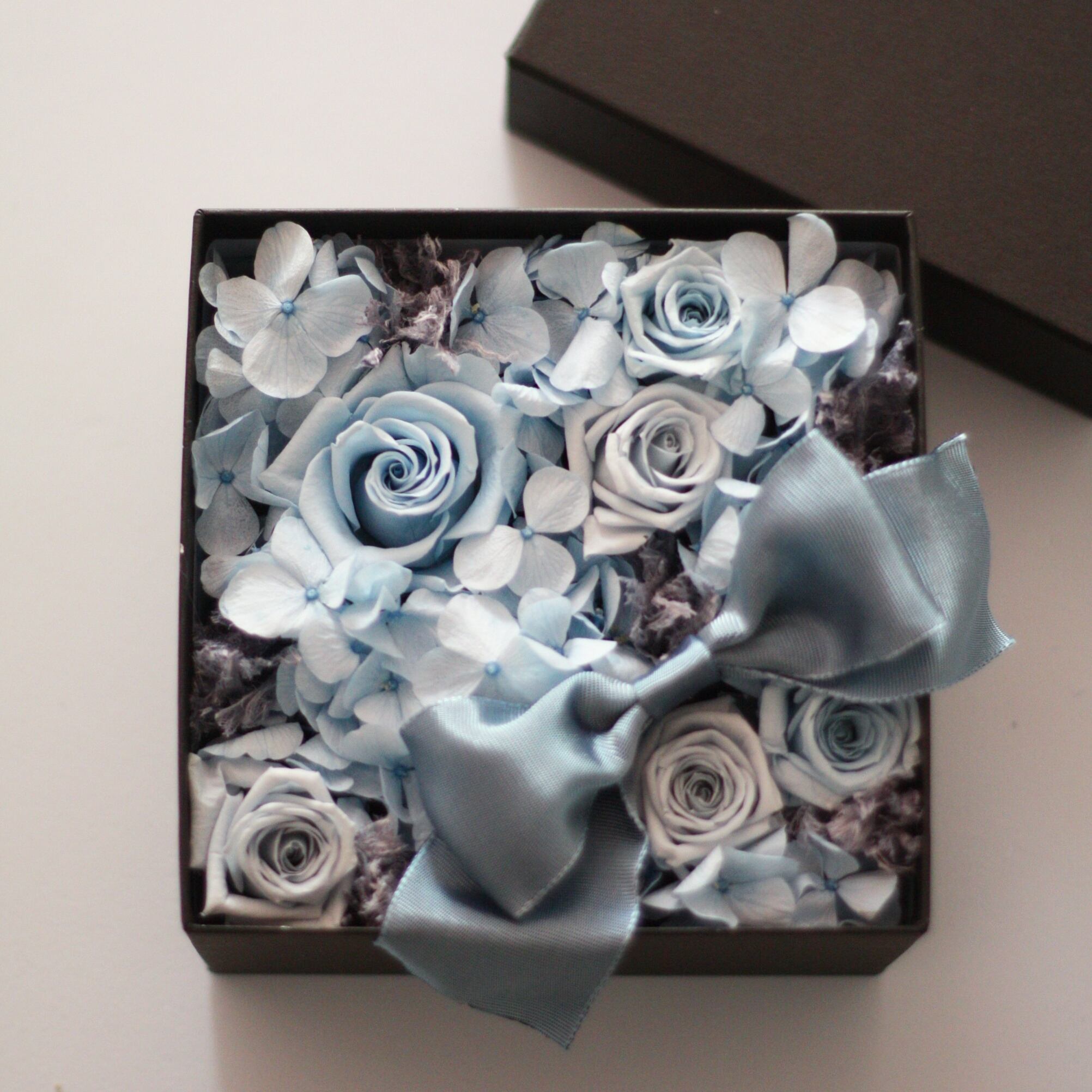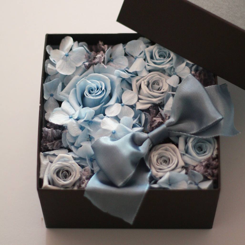 プリザーブドフラワーをふんだんに使用した、とてもおしゃれなボックスアレンジです。